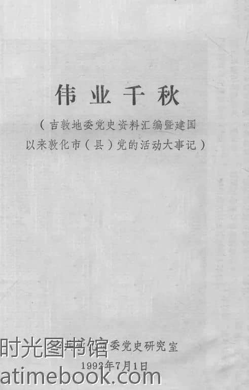 | 网盘路径:/时光图书馆珍藏系列/书籍文件/老图书/《伟业千秋(吉敦地委*史资料汇编暨建国以来敦化市(县)*的活动大事记)》电子版合集.db | ||