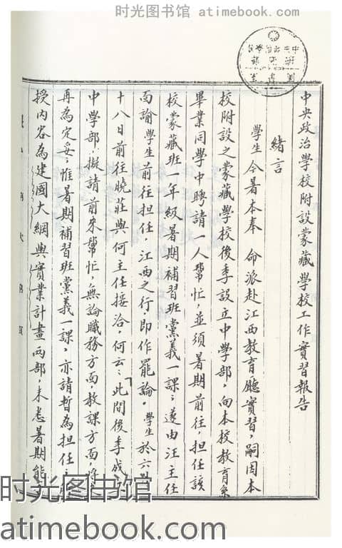 | 网盘路径:/时光图书馆珍藏系列/书籍文件/老图书/《*政治学校附设蒙藏学校工作实习报告》电子版合集.db | ||