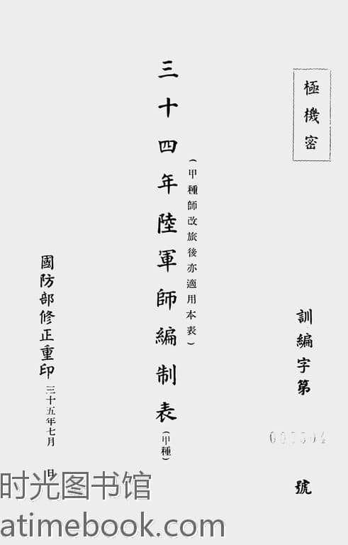 | 网盘路径:/时光图书馆珍藏系列/书籍文件/老图书/《三十四年陆.*.师.编.制.表(甲种)》电子版合集.db | ||