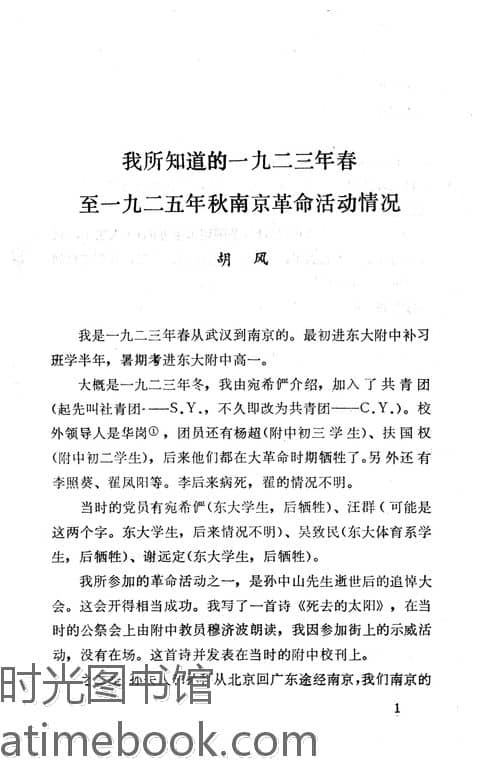2-我所知道的一九二三年春——一九二五年秋南京*活动情况胡风