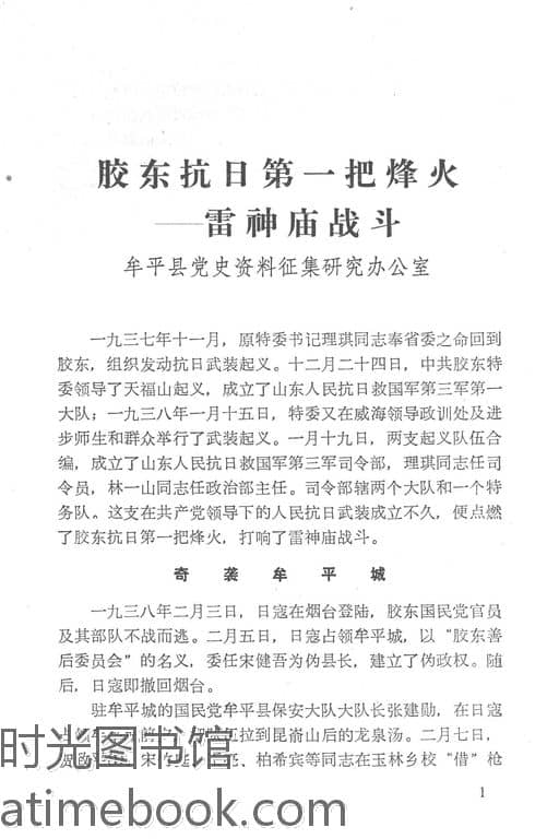 2-胶东抗日第一把烽火——雷神庙战斗 牟平县*史资料征集研究办公室