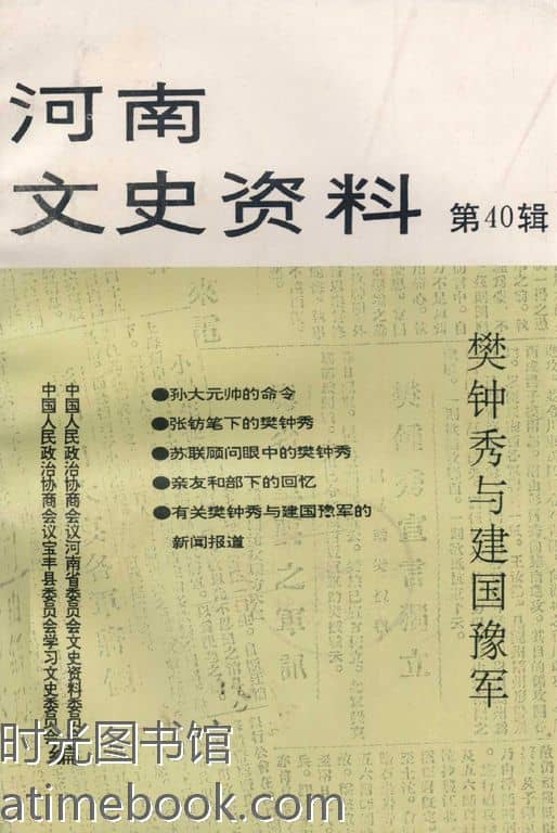 | 网盘路径:/时光图书馆珍藏系列/书籍文件/老图书/《河南文史资料_第40辑_樊钟秀与建国豫*》电子版合集.db | ||