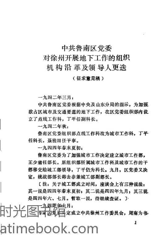 2-1、*鲁南区*委对徐州开展地下工作的组织机构沿革及领导人更迭