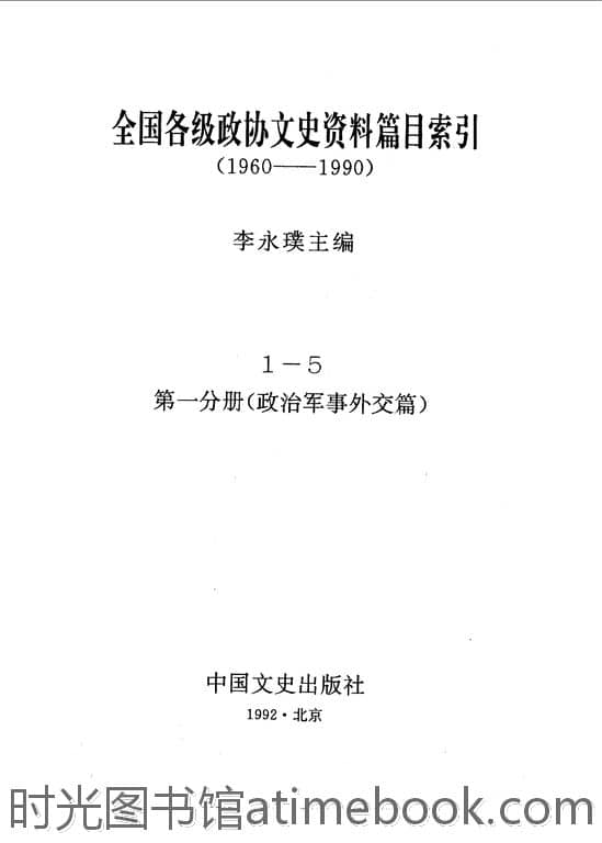 | 网盘路径:/时光图书馆珍藏系列/书籍文件/老图书/《全国各级*文史资料篇目索引_第1分册_政治*事外交篇》电子版合集.db | ||