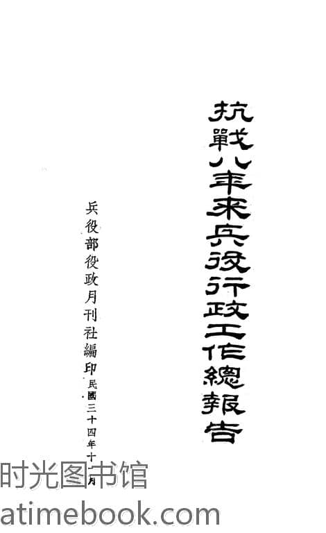 | 网盘路径:/时光图书馆珍藏系列/书籍文件/老图书/《抗战八年来兵役*工作总报告》电子版合集.db | ||