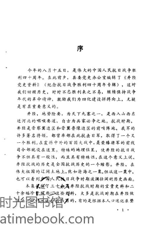 | 网盘路径:/时光图书馆珍藏系列/书籍文件/老图书/《井陉*史资料——纪念抗日战争胜利四十周年(1937—1945)》电子版合集.db | ||