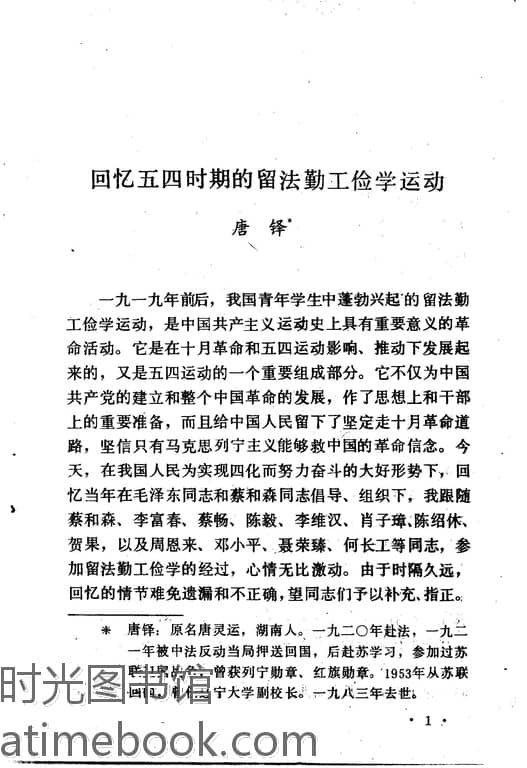 | 关键词:留法勤工俭*动,新文化运动,罢工斗争, | ||