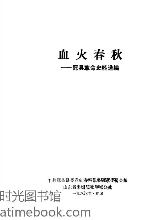 | 网盘路径:/时光图书馆珍藏系列/书籍文件/老图书/《血火春秋——冠县*史料选编》电子版合集.db | ||